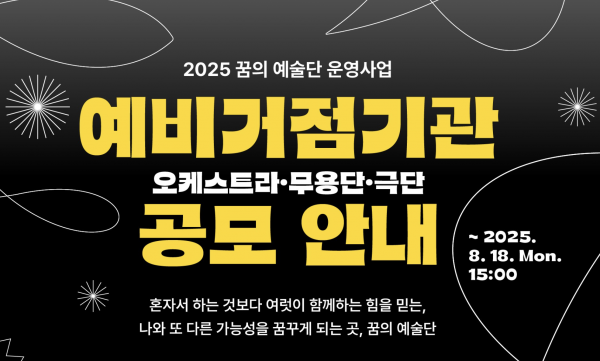 2025 꿈의 예술단(오케스트라, 무용단, 극단) 예비거점기관 공모 안내
